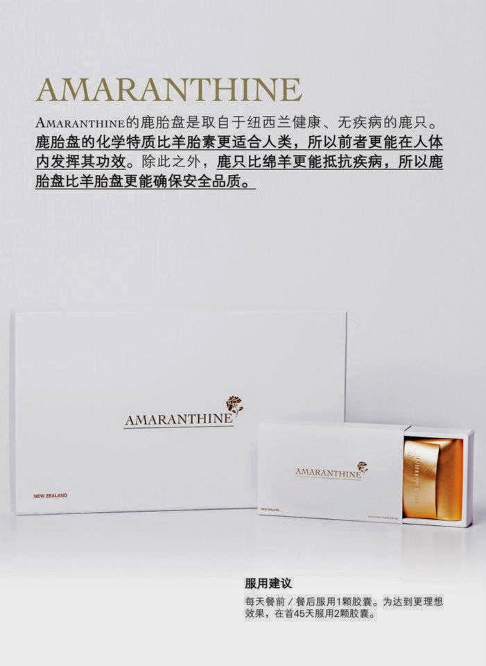AmaranthineRetain Youth, Health & Vigour NaturallyHuman cannot resist the aging process, but you actually may reclaim a long-lasting youthful vigour! A research which is done by experts has showed that deer placenta has excellent biocompatibility without any allergic reactions in human. AMARANTHINE uses the new exclusive Activator-Y reactive technology to extract the most active and most energetic live stem cells from fresh deer placenta. The advanced Activator-Y Reactive Technology can inhibit the formation of aging factor, and regulate endocrine functions.