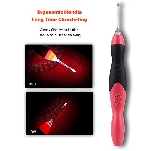 - ◆ CROCHET ANYWHERE, ANYTIME. With these Crochet Hooks with light (2 brightness settings - dim & bright ) and precision hooks, you can crochet effortlessly and see clearly with even the darkest yarn. You’ll never have to stop or slow down again because of bad light or dark yarn.