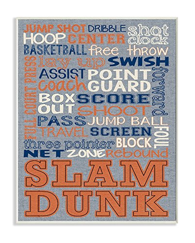 Stupell Home Décor Basketball Typog Denim Feel Wall Plaque Art, 10 x 0.5 x 15, Proudly Made in USA