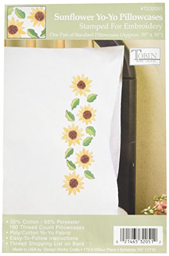 Tobin Stamped Pillowcase Pair Stamped Cross Stitch Kit for Embroidery, 20 by 30-Inch, Sunflower Yo-Yo