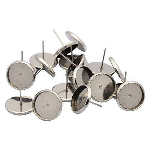 Pandahall 50pcs (25 pairs) 304 Stainless Steel Flat Round Earstud Posts (Tray: 6mm; 8mm, Pin: 0.7mm)