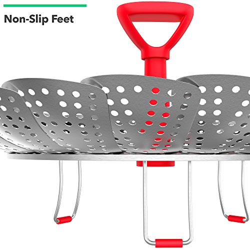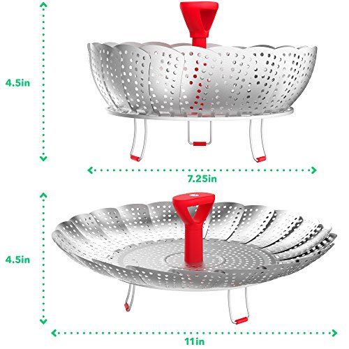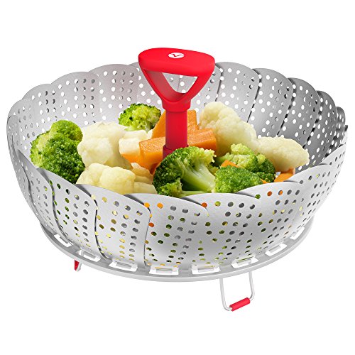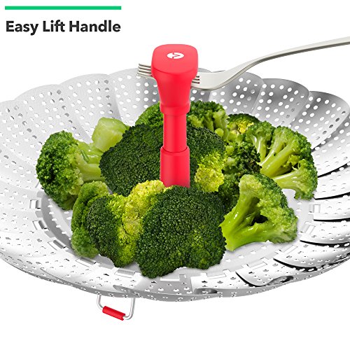Studio : Vremi Publisher : Vremi Product Description Steaming food is undoubtedly one of the best ways you can prepare healthy and nutritious meals for you and your whole family. It retains the nutrients and flavors compared to other cooking methods. Make steaming simple and say hello to hearty cooking with Vremi Hot Steamy Vegetable Steamer. With this steamer basket, you can create steamed dish easy and fast. Drop the steamer to almost any pan and be ready to create a steamy masterpiece in no time. Its foldable feature makes it a versatile steamer that can fit various pan sizes. Vremi Hot Steamy Vegetable Steamer is not only for steaming vegetables. Try it with fish, meat, shellfish, eggs and even fruits for babies. This steamer basket is made of high grade stainless steel guaranteed to deliver countless cooking of various steamed dish. Product Details - Size: 7.25 x 4.5 (folded) 11 x 4.5 inches (fully extended)