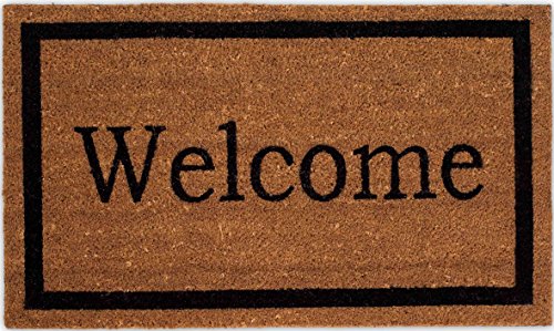 BirdRock Home Welcome Coir Doormat | 18 x 30 Inch | Standard Welcome Mat with Black Border and Natural Fade | Vinyl Backed | Outdoor