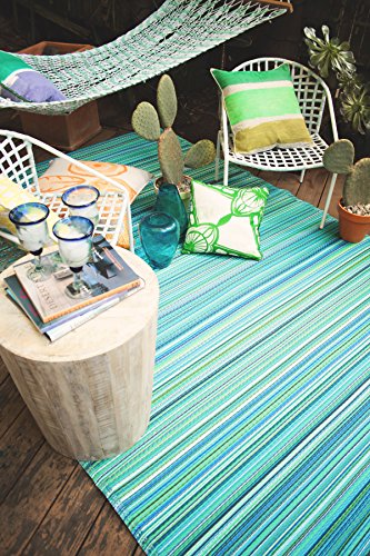 Fab Habitat Cancun Indoor/Outdoor Rug, Turquoise & Moss Green, (6' x 9')
