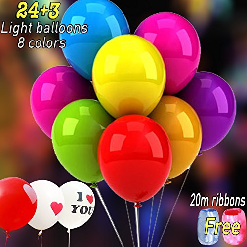 24 x lightedn up Balloon mixed 8 colors