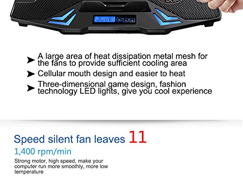 -. Binding : Electronics -. Brand : TonyHuda -. Color : Black -. EAN : 0630991025135 -. Feature : Laptop Cooler 5 fan 6 speed adjust led screen / Application Laptop Size: 12-16inch / Three buttons:+ / - / switchscreen:LED screen / 5 kind of angel gear / Compatible with a variety of size notebook -. Label : Tony -. Manufacturer : Tony -. PackageQuantity : 1 -. ProductGroup : PC Accessory -. ProductTypeName : COMPUTER_ADD_ON -. Publisher : Tony -. Size : 12-15.6 inch -. Studio : Tony -. Title : 12-15.6 inch laptop Cooling Pad Laptop cooler USB Fan with 5 cooling Fans Light Notebook Stand and Quiet Fixture for laptop -. UPC : 630991025135