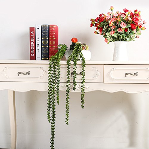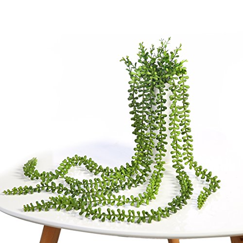 JUSTOYOU 2pcs Artificial Succulents Hanging Plants Real Touch Lover Tears Fake Flowers for Home Wedding Festival Arrangement (Green)