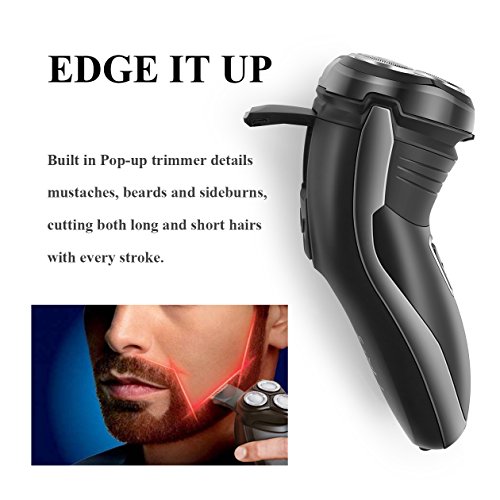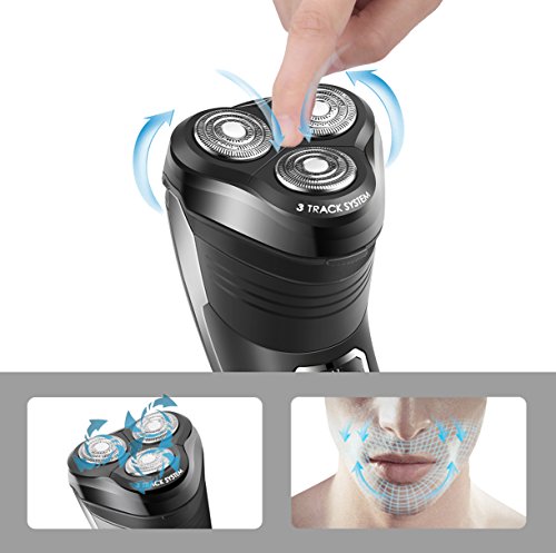 Electric Shaver, Rantizon R-11 Wet & Dry Cordless Rotary Shaver for Men Upgraded Triple-Track Blade IPX6 Washable Rechargeable Razor with Pop-Up Trimmer