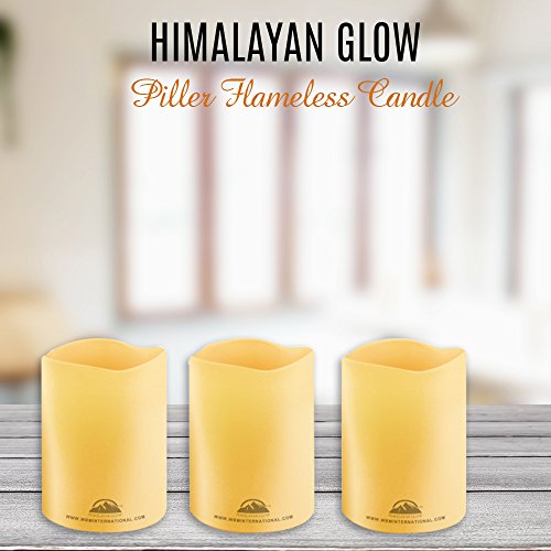 HIMALAYAN GLOW HG1205 Realistic LED Flameless Candle Pillars, 3-Piece, Home Décor, No-Mess Wax Construction, Ivory color