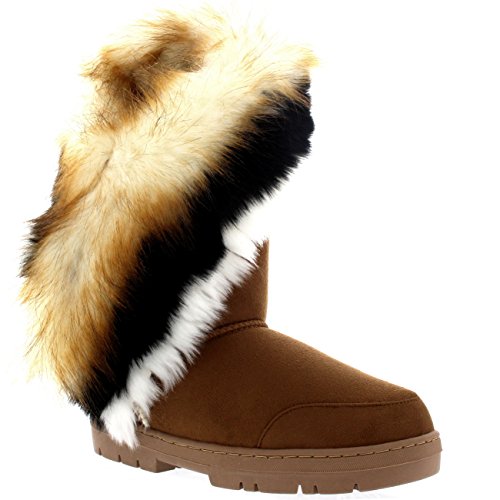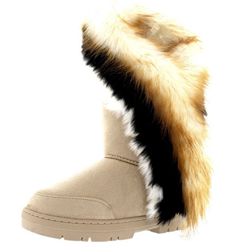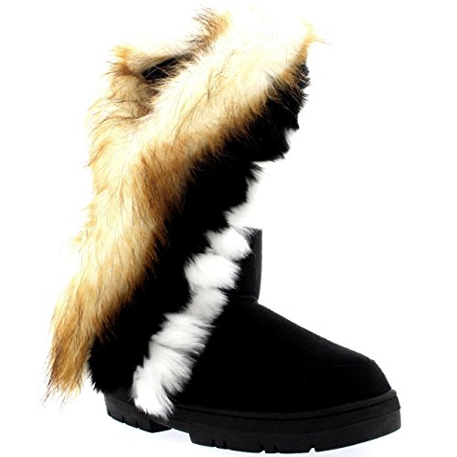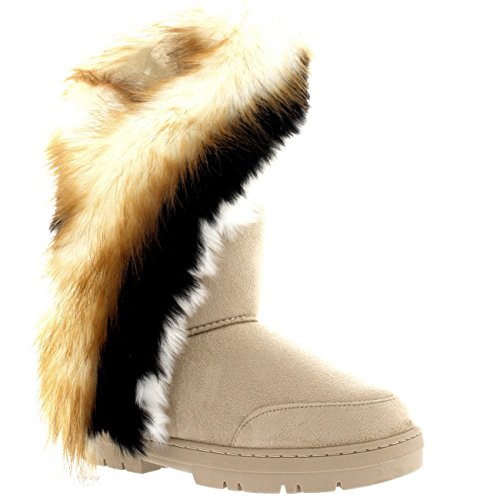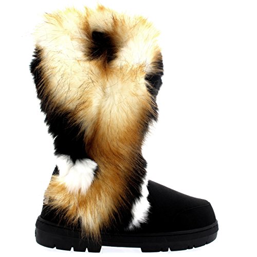 | Womens Tall Tassel Rabbit Fur Lined Winter Cold Weather Snow Rain Boots |