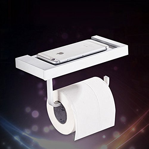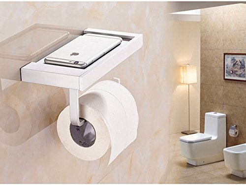 - Toilet paper holder with storage shelf is good enough to hold mobile phone, cigarettes, ashtray, wrist watch, eye glasses,and the Top shelf is Concave to prevent Phone falling