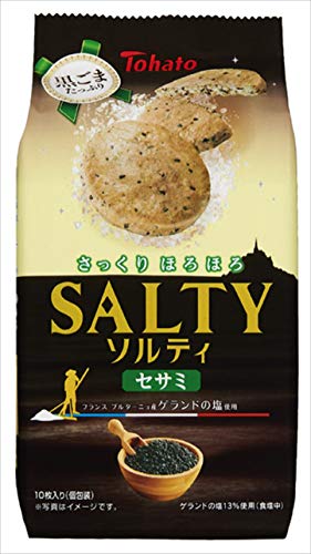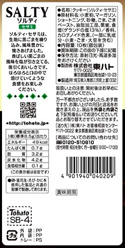 原材料:小麦粉、マーガリン、ショートニング、砂糖、ごま、ごまペースト、油脂加工品、黒蜜、食塩(ゲランドの塩13%)/香料、カロチノイド色素、(一部に乳成分・小麦・ごま・大豆を含む)