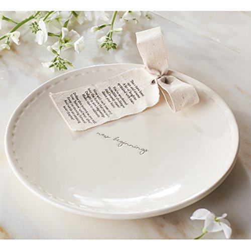 - Ceramic plate with debossed stitch border features debossednew beginningssentiment and linen tag and bow with printed encouraging poem