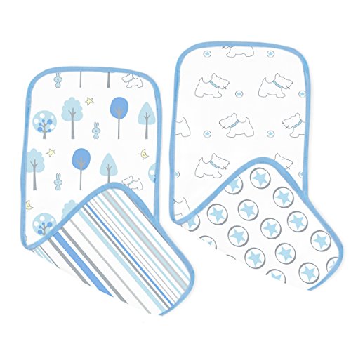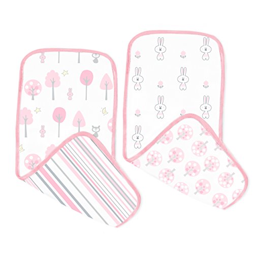 Burps, dribbles, baby spit-up. Life with a new bundle of joy can be messy. SwaddleDesigns 100% premium Cotton Muslin Baby Burpies are incredibly soft and absorbent, made of multiple layers of boutique quality muslin that will help protect your clothing and catch life's spills. Set of two reversible burp cloths with cheerful prints on both sides. Each measures 8 x 18 inches when unfolded. Our stylish burp cloths are a diaper bag essential that get softer with every wash. Use as a burp pad, lap pad, changing pad, wiping cloth, and so much more! Coordinates with a variety of our quality baby essentials. Machine wash gentle.