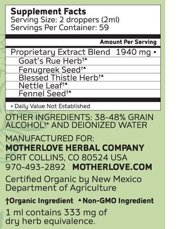 -. Feature : Uniquely formulated herbal blend that combines certified organic herbs fenugreek, blessed thistle, nettle leaf, and fennel seed with goat's rue for effective lactation support needed due to insufficient mammary tissue / Ideal for mothers who did not see increased breast size during pregnancy, have had breast surgeries, or for adoptive mothers who wish to breastfeed / 100% certified USDA organic and Kosher certified liquid concentrate - great for rapid absorption and potency / Includes 2 oz of liquid herbal extract and dropper / Satisfaction guarantee: We offer a full refund for any reason if you are not satisfied