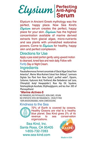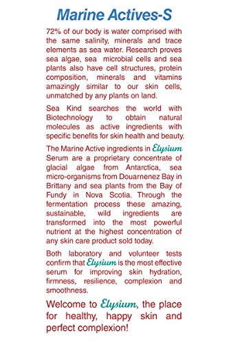 Elysium in Ancient Greek mythology was the perfect, happy place. Now Sea Kind's Elysium serum creates the perfect, happy place for your skin. Elysium has the highest concentration available today of marine derived extracts from algae, micro-nutrients and sea plants fermented to provide unmatched restorative powers. Come to Elysium for healthy, happy skin and perfect complexion.