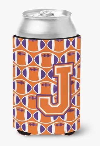 Caroline's Treasures CJ1072-JCC Letter J Football Orange, White and Regalia Can or Bottle Hugger, Multicolor