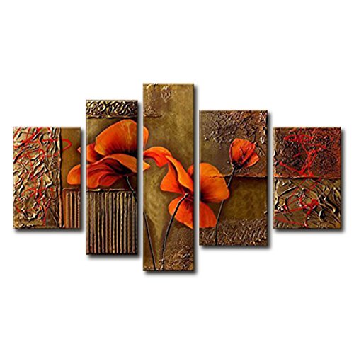 -. Title : FLY SPRAY 5-Piece 100% Hand-Painted Oil Paintings Panels Stretched Framed Ready Hang Yellow Elegant Beautiful Orange Flowers Buds Modern Abstract Canvas Living Room Bedroom Office Wall Art Home Decoration