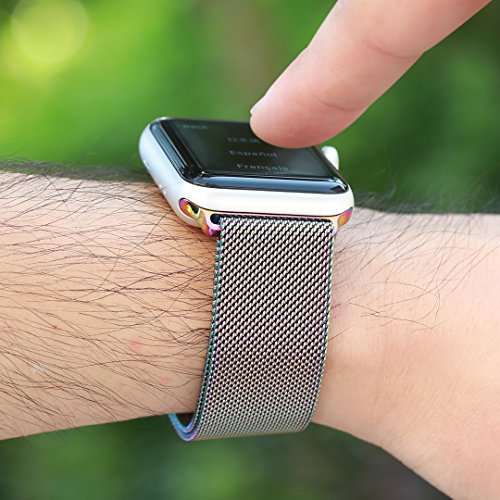 -. Feature : 1-Year Warranty: Unconditionally fully refund or hassle free replacement for any product quality problems / Strong Magnetic: Easy to assemble and resize, holds your band securely, comfortable for day to day wear / Professional and Dressy: Premium stainless steel mesh loop band suitable for all occassion / Multiple Color: bands are available in sliver, black, gold, rose gold, colorful, rose pink, champagne / Compatible Models: Apple Watch Series 3, Apple Watch Series 2, Apple Watch Series 1, Apple Watch +, Apple Edition, Apple Watch Hermès 38/42mm Case