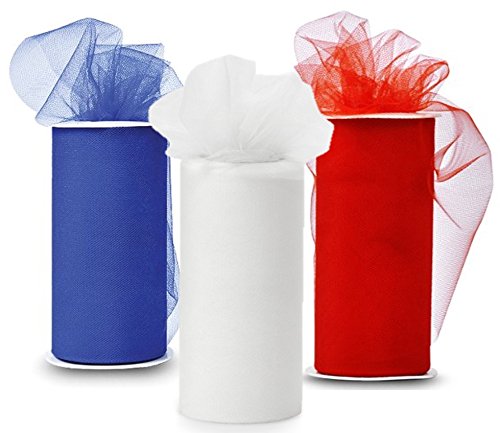Patriotic Tulle - Three Spools of Tulle Fabric, 25-Yard each, Royal-Blue, Red and White