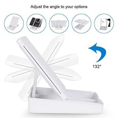 - Organizer base conveniently stores makeup, jewelry, tweezers, hair accessories, and more. Save your space and money..After you finished makeup, you can open or fold it like a book when not using to protect it away from the dust or other scratches. it is easy and convenient to take it as storage box when you trip