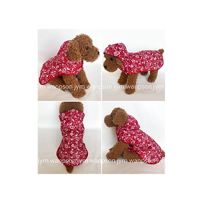 (노 브랜드)무상표 상품 하트가 가득 레인 코트 4사이즈 【jym wanpson(짐 원푸손)】 입히기 쉬운 판초 타입 카파 우비 레인 웨어 하트 귀여운 장마 방수견 애완동물복 중형견