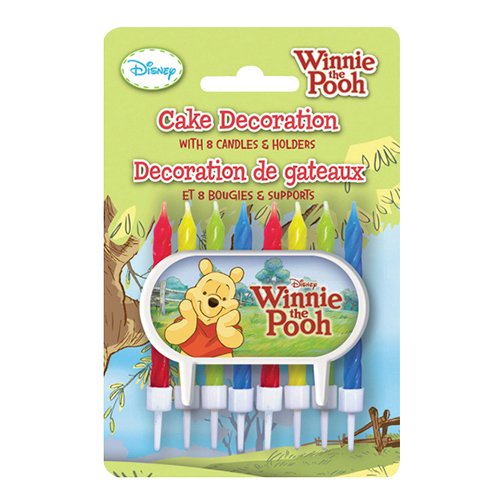 - Winnie the Pooh Cake Decoration Kit includes: 1 cake topper and 8 assorted red, yellow, green, and blue candles with holders
