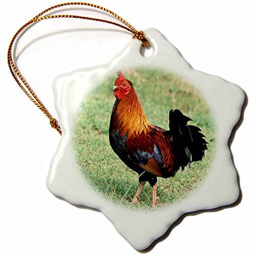 3dRose orn_83726_1 Rooster, Farm Animal-NA02 DFR0048-David R. Frazier-Snowflake Ornament, Porcelain, 3-Inch