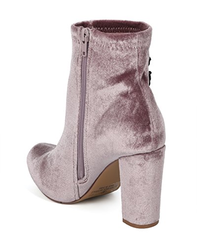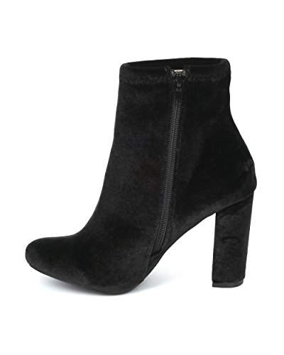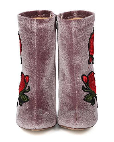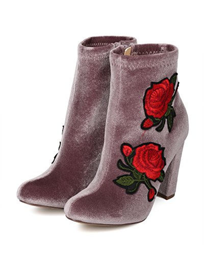Product Description These rosy booties are made with a velvet upper, almond toe and single sole. Also made with embroidered rose patches, chunky heel and side zip for easy slip on and off. 0