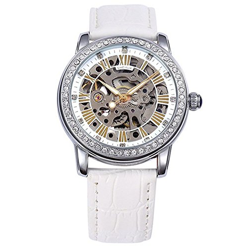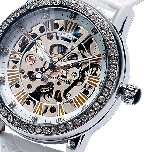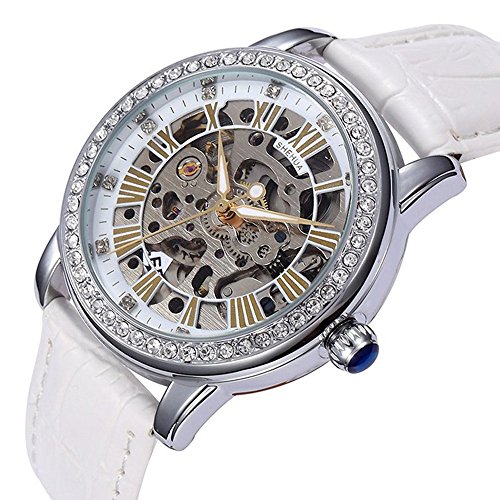 -. Feature : ◆ Luxury elegant feminine women Rhinestone case Roman Number dial Self-Wind Mechanical watch with white Genuine Leather Strap & a top quality Gift Box / ◆ A Eco-friendly Watch: Self-wind movement, it doesn't need any battery, it will work after winding(energy saving). / ◆ Self-Wind Movement: It means that you don't need to wind it all the time, it will be winded when you are walking, moving or doing daily life thing. / ◆ It can be used to view time, also can be a Dressing Clothing Accessories(a nice Dating watch will attract the eyes of everyone). / ◆ It will come with A top quality Gift Box, so it would be a perfect gift for ladies; the best Birthday, Valentine, Wedding, Anniversary, Christmas or New Year Gift.