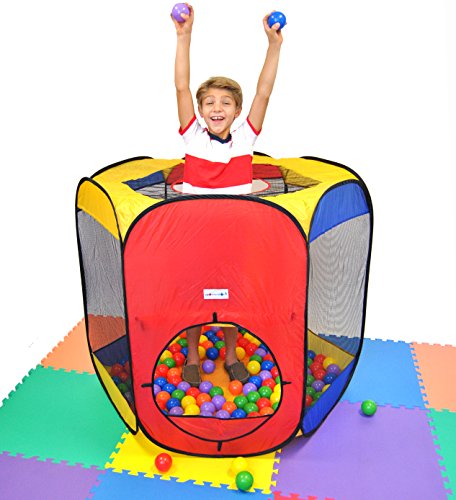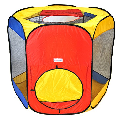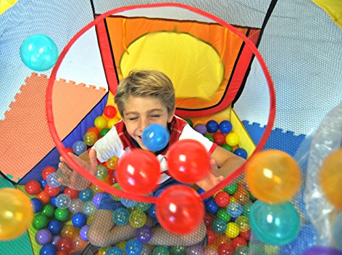 - Feature : Hexagon theme play tent with a carry bag. Mats, hampers, tunnels and play balls are sold separately. / Sturdier materials to reduce collapsing and improved safety measures with new flapper in the entrance to prevent balls from flowing out! / Three opening options; front and back side opening with top opening for enhancing distance-shooting coordination with play. Meshing for child play visibility. Dimensions: 48" L x 41" W x 38" H (inches) / Set up a playground in seconds with its twist technology. / Note: This order does NOT come with any play balls! We recommend 400 of our play balls max.
