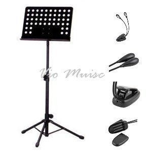 Metal Music Stand, Tripod Stand Holder and Clip 2 Arm 4 LED Book Reading Music Stand Light Lamp