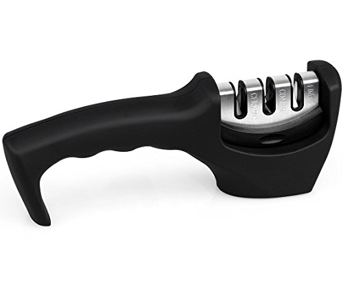 [Product Information]- PROFESSIONAL CHEF'S TOP CHOICE Do not settle for anything but the best. The Zulay 3 stage sharpening design allows for the best of both worlds: ease of use and razor sharp precision sharpening. The coarse slot will revive very dull or damaged knives and the fine ceramic slot hones and polishes it to the perfect angle. Sharpening has never been easier.