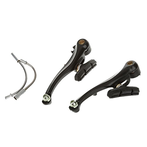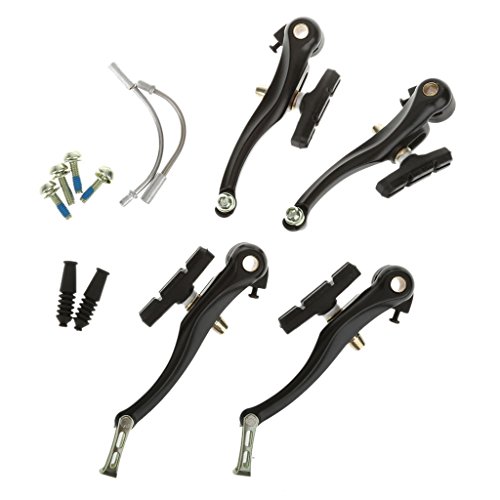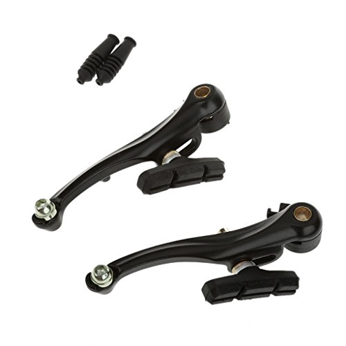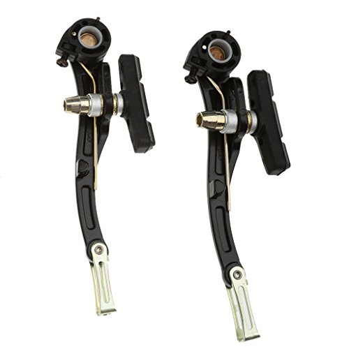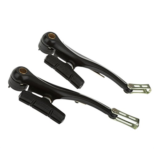 Description: Material: Aluminum alloy Made of high quality aluminum alloy construction, durable and not easy to get scratches Includes brake levers, brake noodles and nuts The hard material of this V Brake ensures the stability of your bike Great replacement brake set for mountain style bicycles Easy and convenient to install
