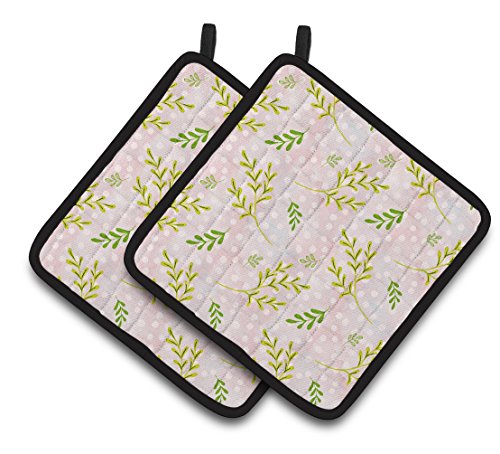 Caroline's Treasures BB7480PTHD Watercolor Leaves Pink Decorated Pot Holder, 7.5" x 7.5", Multicolor