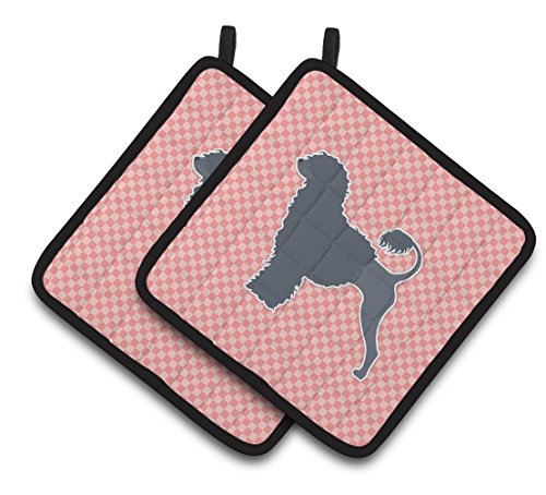 Caroline's Treasures Portuguese Water Dog Checkerboard Pink Pair of Pot Holders BB3668PTHD, 7.5HX7.5W, Multicolor
