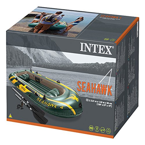 Intex Seahawk 4, 4-Person Inflatable Boat Set with Aluminum Oars and High Output Air Pump (Latest Model)