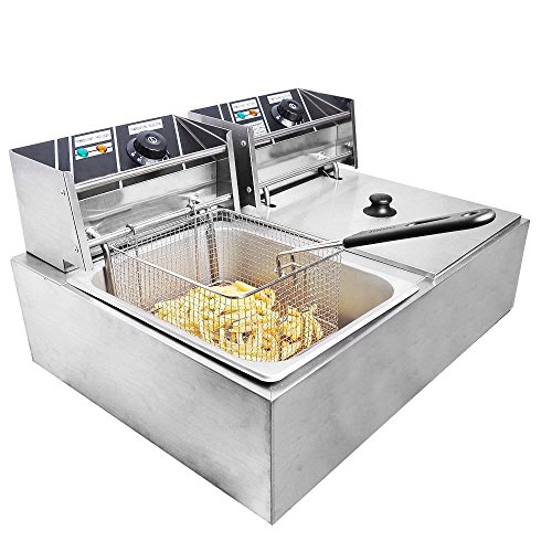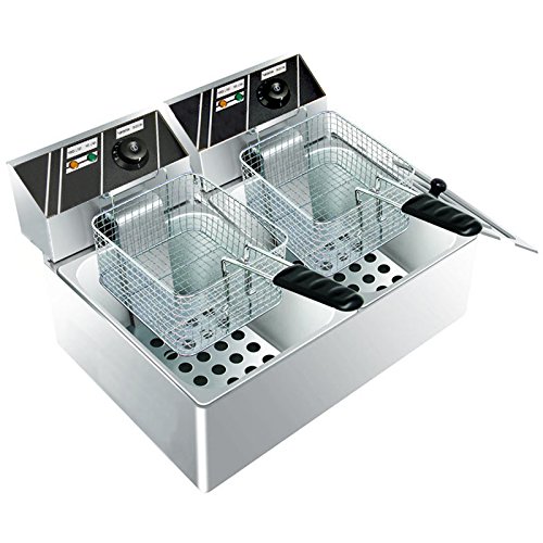 Clevr 11 Liter Capacity Commercial Stainless Steel Deep Fryer Machine 110v Double Two Tank Design