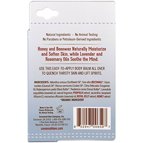 Savannah Bee Honey & Beeswax Body Balm Rosemary Lavender 0.6 oz