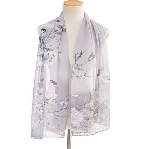 -. Title : Silove Women Lightweight Shawl Scarf Chiffon Birds P.R.Inted Vacation Scarves