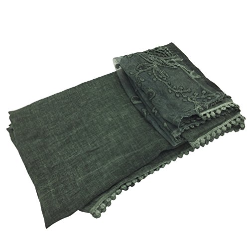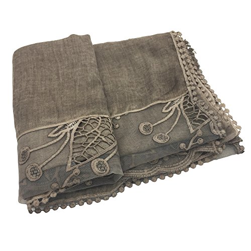 -. Feature : Blend of cotton, fine viscose and acrylic.Weight: Approx. 5 oz. Length Approx. 75" with fringes / width Approx. 31". It's soft, light weight / Nice long scarf with lace, sewn from lightweight and soft voile fabric, can be worn all year round in all weathers. / Great as a shawl, head wrap, hijab, stole or light cover. Wrap a pashmina stole around shoulders for a touch of late-evening warmth, or tie around your neck for casual panache. They will dress up any outfit whether a formal occasion such as a wedding or dinner date or simply use as a summer evening wrap. / Many ways to wear and use: Beach Wrap, Summer Shawl, Beachwear, Head Scarf, Wrap Skirt / Remove attached label from the scarf might cause damages. Gentle cycle or hand wash in cold water. Do not bleach. Hand wash could use hair shampoo in cold water. Wash individually. Squeeze gently and do not twist. Dry flat.