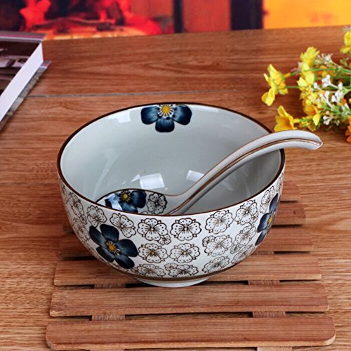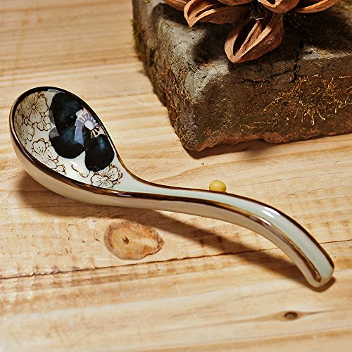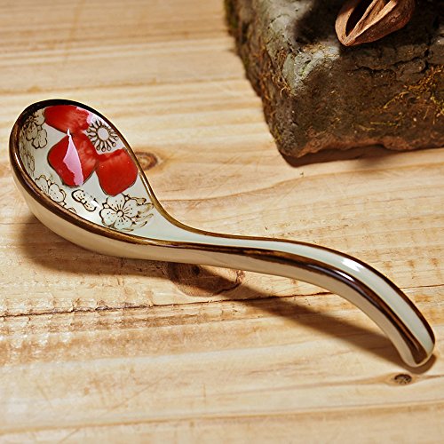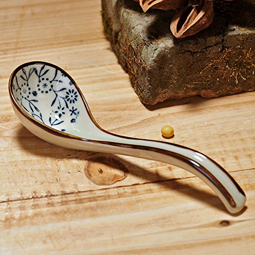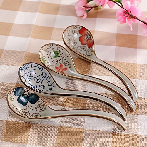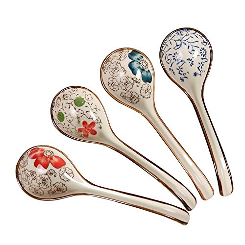 DEBON Long Handle Soup Spoon, Hand-Painted Ceramic Table Spoon (4-pack)