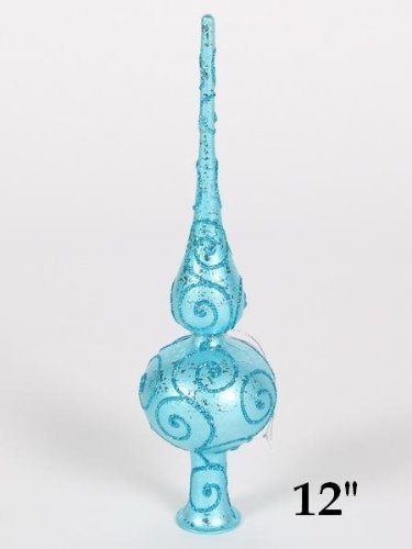 Queens of Christmas WL-TOPPER-12-AQ Finial Topper Ornament with Aqua Glitter, 12", Teal