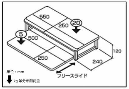 | 重量 | モニタ台:2000g、キーボードテーブル:1200g 個装重量:3900g |