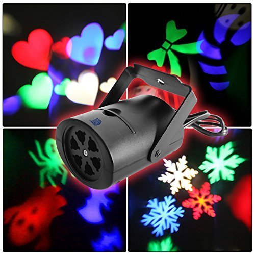 Best Chrismats and New Year Gifts for children--Mini card stage lights with 4 pieces gobo cards which have different patterns: heart, snowflake, spider, Bowknot, Bat, etc) Features: - RGBW LED stage light which is suitable for kids using in Halloween, Christmas and birthday party