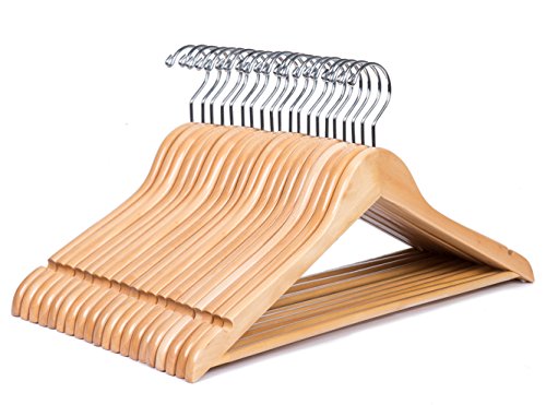 -. Title : Amber Home Gugertree Solid Wooden Hangers Wood Suit Coat Hangers, Natural Color Smooth Finished with Non-slip Bar,Chrome hook (20 Pack)