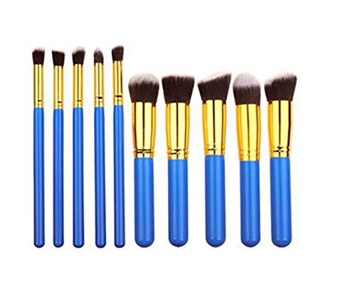 Qpower 10 Pieces Makeup Brush Set Beauty Blending Blush Brushes Face Powder Professional for Use as Concealer Brush Contour Brush Cosmetic Blending Brush Tool (Blue Gold)