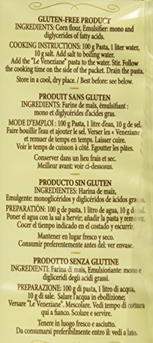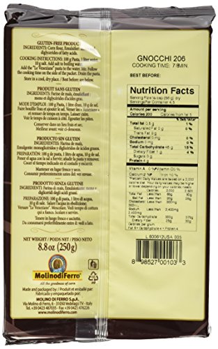 -. Binding : Misc. -. Brand : Le Veneziane -. EAN : 0898527001033 -. Feature : le-veneziane-corn-pasta-gnocchi / Le Veneziane gluten free pasta features a taste that rivals wheat pasta. Some can't even tell a difference! Choose from a variety of Le Veneziane Corn Pastas. -. IsAdultProduct : 0 -. PackageQuantity : 1 -. ProductGroup : Grocery -. ProductTypeName : GROCERY -. Size : 0.69 -. Title : Le Veneziane Italian Gluten Free Corn Pasta Gnocchi 250 -. UPC : 898527001033