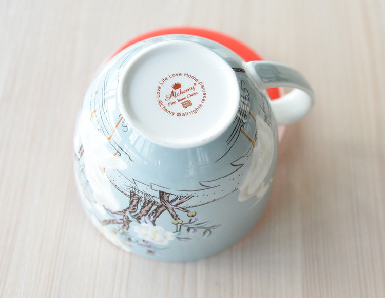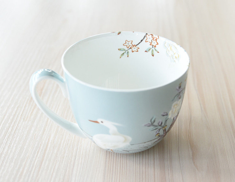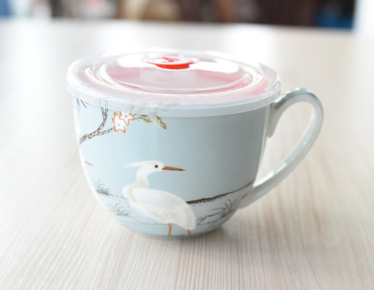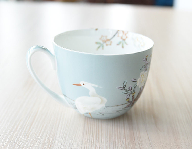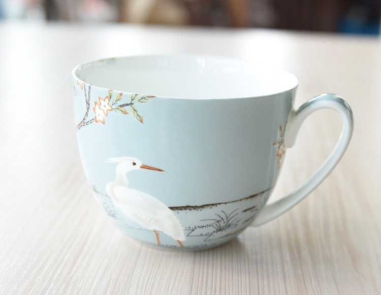 仙鹤 骨瓷早餐杯 牛奶杯 泡面杯 麦片杯 带盖马克杯 精致 经典杯