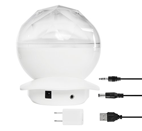 Features 12 different LED colors | 1-hour auto-shutoff | Tilt up to 45 degrees for wide array of coverage | Connect your favorite MP3 iPhone player to accompany the peaceful light display.